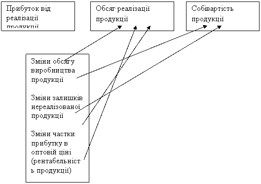 Прибуток від реалізації продукції безпосередньо залежить від двох основних показників: обсягу реалізації продукції та її собівартості. На зміну обсягу реалізації продукції впливає зміна обсягу виробництва, залишків нереалізованої продукції, частки прибутку в ціні продукції (рентабельність продукції).