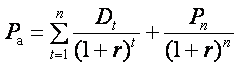 де Pn — прогнозна вартість реалізації акцій у кінці періоду її використання;