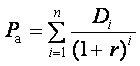 де Di — річні дивіденди, які виплачуються в і-му році;