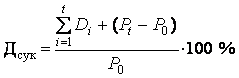 За купівлі акцій для перепродажу через деякий час ураховуються дивідендна та капіталізована дохідність. Отже, сукупна (повна) дохідність (Дсук) може бути визначена за такою формулою: