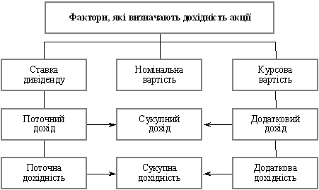 Ставка сукупного доходу дорівнює сумі ставок поточного й додаткового доходу. На рис. 10.1 наведено складові сукупної дохідності за акцією.