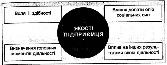 Для того щоб здійснювати постійний пошук нових способів комбінування ресурсів, потрібно мати відповідні якості: волю і здібності; здатність визначати головні моменти діяльності, «плисти проти течії», долаючи опір соціальних сил; здійснювати вплив на інших результатами своєї діяльності, духовною свободою, витратами сил та енергії (рис. 2).