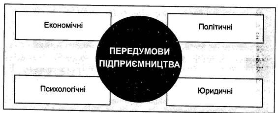 Підприємництво як явище господарського життя завжди розвивається у певному соціально-економічному та історичному середовищі. Саме тому для його безпосереднього відтворення необхідні певні передумови (рис. 3).