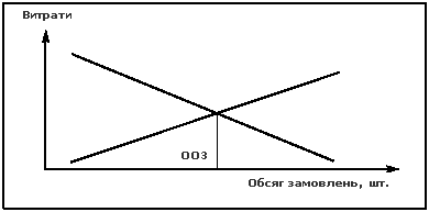 Оптимальний об’єм замовлень (ООЗ) можна визначити сполученням графіків, представлених на мал. 15 і 16 (мал. 17).