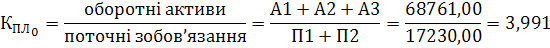 4). Коефіцієнт поточної ліквідності. Він дає загальну оцінку платоспроможності підприємства і розраховується за формулою