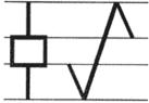Звичайна січка, у якої присутні обидві тіні й тіло, причому всі не видатних розмірів. Типова лінійна динаміка ринку при формуванні свічок показана справа від свічки, Дана свічка є звичайною для «бичачого» ринку. |