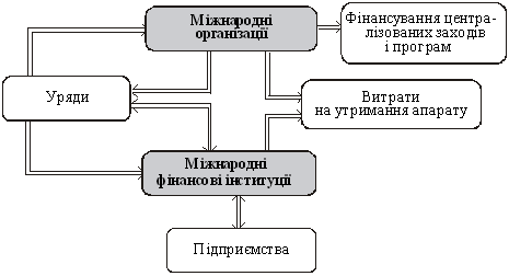 Система взаємовідносин на рівні міжнародних фінансів відображена на схемі 37.