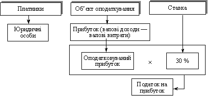 Об’єктом оподаткування є балансовий прибуток (з відповідними корективами), який визначається як різниця між валовими доходами і валовими витратами. Ставка податку на прибуток встановлена на рівні 30%.