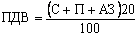Включення ПДВ у ціни проводиться за такою формулою (С — собівартість, П — прибуток, АЗ — акцизний збір):
