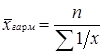 Середню гармонічну використовують для узагальненої характеристики ознаки тоді, коли відомі окремі значення досліджуваної ознаки і обсяги явищ, а частоти невідомі. Її формула має такий вигляд: