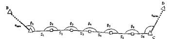 Полігонометрія — побудова на місцевості у вигляді системи ламаних ліній, у яких вимірюються сторони і кути при вершинах (рис. 2.2). Полігонометричні ходи опираються на вихідні сторони АВ і CD. На початку А і в кінці С ходу виконують астрономічні спостереження, з яких визначають координати цих пунктів та азимути, а потім дирекційні кути вихідних сторін АВ і CD.