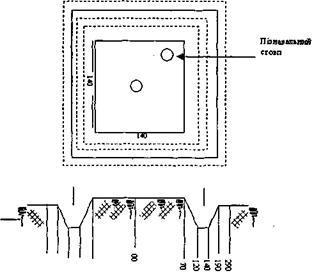 Зовнішнє оформлення центру типу 160 виконують обкопуванням квадратної форми з канавою, розміри якої приведені на рис. 3.4