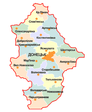 Донецька область знаходиться на південному сході України. Займає площу 26,5 тис.км2, кількість населення 4,843 млн. чол.