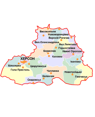 Адміністративно-територіальні одиниці Кількість адміністративних районів – 18: Бериславський, Білозерський, Великолепетиський, Великоолександрівський, Верхньорогачицький, Високопільський, Генічеський, Голопристанський, Горностаївський, Іванівський, Каланчацький, Каховський, Нижньосірогозький, Нововоронцовський, Новотроїцький, Скадовський, Цюрупинський, Чаплинський.