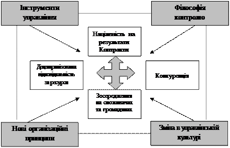 § Успішні інструменти управління (наприклад, децентралізована відповідальність за професійну діяльність та ресурси, угоди, підрахунки затрат і результатів) також використовуються в державному секторі;
