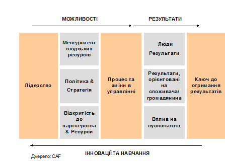 Схема 2: Елементи та сфери сучасного менеджменту в державному секторі (CAF)