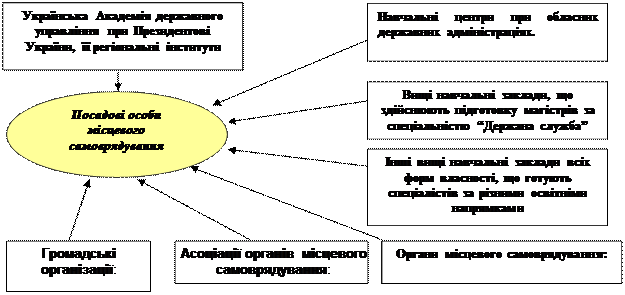 Цей процес призвів до появи великої кількості суб¢єктів діяльності у сфері підготовки, перепідготовки та підвищення кваліфікації посадових осіб органів місцевого самоврядування та працівників комунальних установ (схема 1).