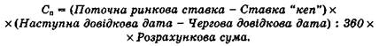 Якщо на 01.03.97 ставка LIBOR дорівнює 9,95%, тобто менша за ставку "кеп", платіж за цей період не здійснюватиметься. Загальна формула для розрахунку суми платежу Сп має вигляд: