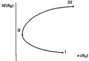 Графічно процес визначення ефективного портфеля подано на рис. 13.6. Область, обмежену лініями І—II—III, називають допустимою множиною портфелів.