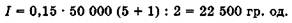 Приклад. Кредит у сумі 50 000 гр. од. наданий на 5 років під 15% річних з погашенням основної суми боргу щороку однаковими частинами. Визначити суму процентів, отриманих банком від надання кредиту та платіж у погашення кредиту за четвертий рік.