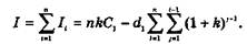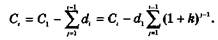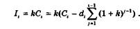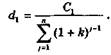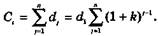 де dt — платіж у погашення основної суми боргу, що визначається виразом (13.42); Ct — залишок боргу на початок і-го періоду, що визначається виразом (13.43). Сума платежів за весь період кредитування дорівнює сумі кредиту та сумі сплачених за ним процентів