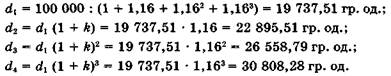 Позначивши через dг частку основної суми боргу, сплачену в другому періоді, і врахувавши те, що платежі в погашення кредиту за перший і другий періоди однакові, отримаємо рівність