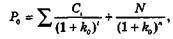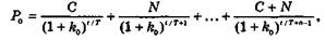 де Сі — купонні виплати за і-й період; п — кількість періодів до погашення; N — сума, яку отримає власник облігації при її погашенні (як правило, дорівнює номінальній вартості облігації); k0 — дисконтна ставка, що дорівнює існуючій ставці за подібними зобов'язаннями та відображає дохідність при погашенні цієї облігації.