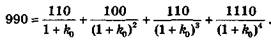 4. Для того щоб визначити, чи забезпечить ця облігація інвестору дохідність на рівні 11,5%, якщо придбати її за ринковою вартістю 990 гр. од. 01.12.02 р. після сплати за нею процентів, необхідно розв'язати відносно k0 рівняння: