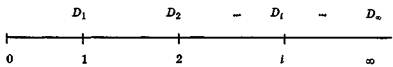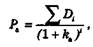 де Di — дивіденди за і-й період; ki — ставка дисконтування, що відображає очікувану дохідність акції. Ця нескінченна сума може бути наближено обчислена тільки в окремих випадках, зокрема у разі постійних дивідендів.