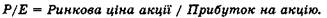 2. Метод "дійсної вартості акції". Одним із методів оцінювання акцій є метод, який базується на аналізі співвідношення поточної ринкової ціни акції до величини прибутку, що припадає на одну акцію. Це співвідношення має назву Р/Е (price-earning ratio), є одним з найважливіших показників для оцінювання акцій і завжди наводиться в різних формах звітності про цінні папери корпорацій: