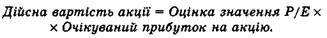 а потім оцінити значення показника Р/Е та очікувані в майбутньому прибутки корпорації, можна отримати оцінку дійсної вартості акції: