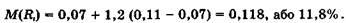 Приклад. Безризикова процентна ставка ДБ становить 7%, середня ринкова ставка М(ДР) дорівнює 11%. Визначити необхідну ставку доходу за акціями М(R1), якщо коефіцієнт Р корпорації дорівнює 1,2.