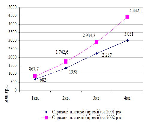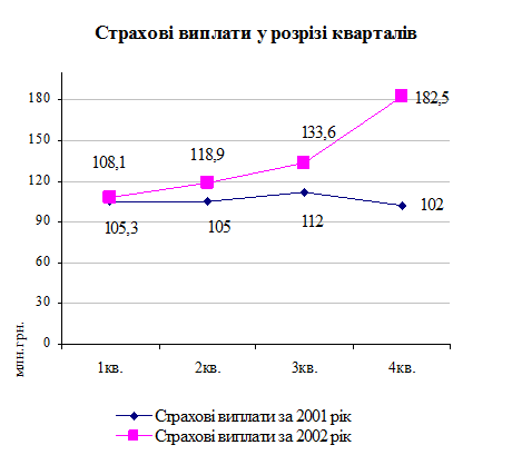 Загальний обсяг страхових виплат у 2001-2002 рр., млн. грн.