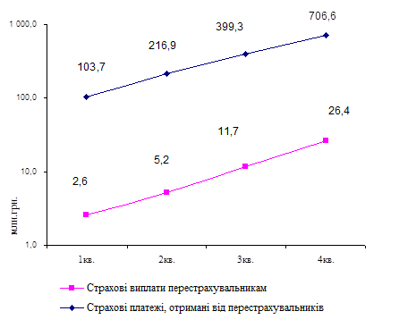 Страхові платежі (премії) у розрізі кварталів Страхові платежі (премії) наростаючим підсумком