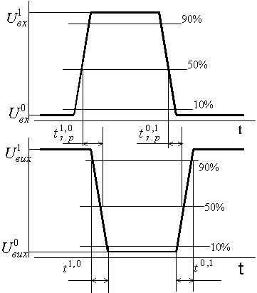 Динамічні параметри ІМС характеризують властивості ІМС в режимі перемикання. До них відносяться (див. рис.2): час затримки розповсюдження сигналу при вмиканні