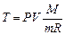 , де P і V відповідно тиск і об’єм, m — маса і M — молярна маса газу, а R — газова стала 8,3