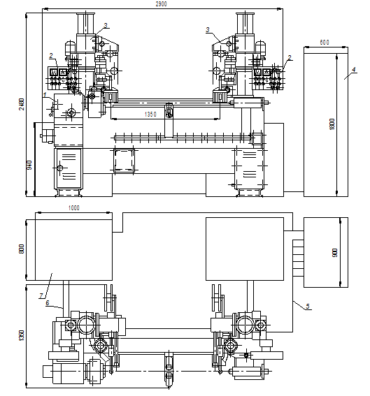 1 – обертач; 2 – пульт керування; 3 – зварювальна голівка; 4 – шафа керування; 5 – кабелі керування; 6 – зварювальні кабелі; 7 – зварювальний випрямляч.