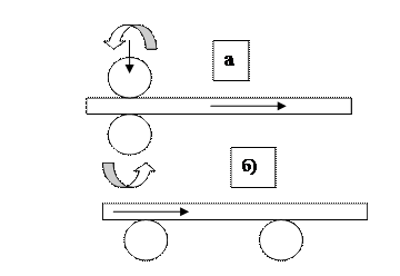 У приводних роликових конвейєрах переміщення листів і полотнищ здійснюється примусово за допомогою приводних пристроїв за рахунок сил тертя між роликами і поверхнею листа, що переміщається (рис 10,б). При необхідності подолання значного опору руху, коли сил тертя недостатньо, використовують парні примусово притиснуті ролики (рис 10,а).