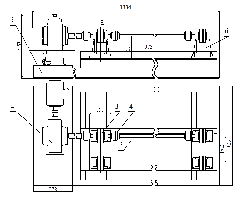 Черв'ячний вал 6 з'єднаний муфтою 5 із вихідним валом приводу, а кінці вала 2 - із сполучними валами, що передають обертання іншим приводним опорам. Вал 2 може мати один або два вихідних кінця, залежно від розташування приводних опор та їх кількостї . При установці приводних опор по обидва боки від поздовжньої вісі виробу черв'ячний вал 6 має другий вихід для з'єднання з поперечним сполучним валом. Інші приводні опори стенда (безредукторні) відрізняються від вищеописаної відсутністю черв'ячного редуктора і, відповідно, меншою шириною стояка. Для збільшення зчеплення з виробом ролики обладнані гумовими шинами.