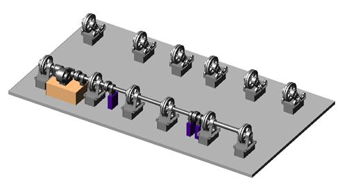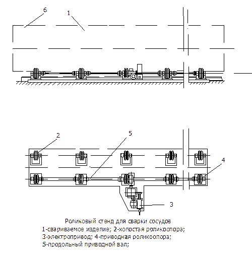Для зварювання габаритних циліндричних виробів роликовий обертач компонується відповідно до рис. 11. Усі приводні роликоопори зв'язані поздовжнім валом.