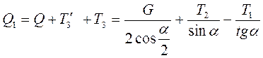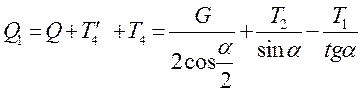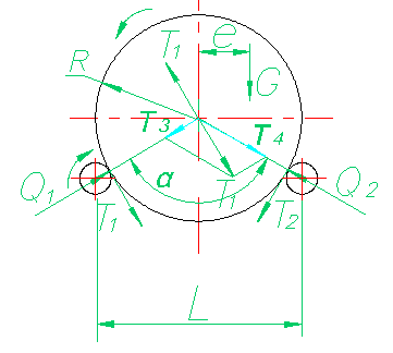 Отже, під дією окружного зусилля Т1 до основних опорних реакцій роликів Q додаються сили ± Т3 – на ведучі ролики і сил Т4 – на відомі. Аналогічні зусилля