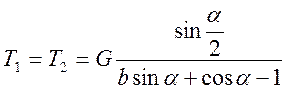 Якщо барабан обертається за годинною стрілкою, то сили Т1 і Т2 спрямовані нагору й опорні реакції зменшуються.