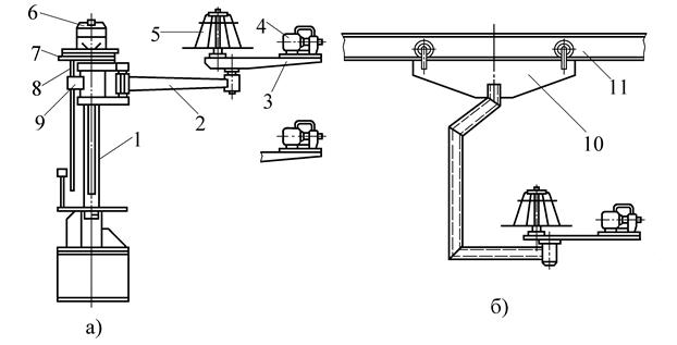 Іноді буває доцільно конструктивно сполучати окремі види устаткування. Так, підвіски напівавтоматів (рис. 14.) зручно розміщати на стійці консольно-поворотного крана.