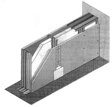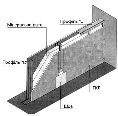 Внутрішня стіна з двошаровим каркасом і двошаровим Облицюван-ням гіпсокартонними листами.