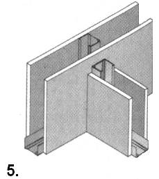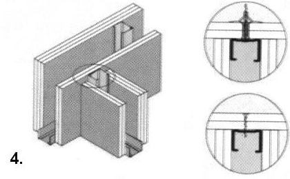 4. З’єднання стін типу “Т”. Профіль “C” закріпленний до листа;