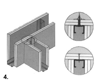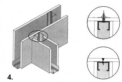 4. З’єднання стін типу “Т”. Профіль “C” закріплений до листа;