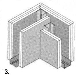 4. З’єднання стін типу “Т”. Профіль “C” закріпленний до лиcтa;
