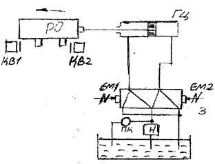 Даний золотник переключається за допомогою тягових електромагнітів ЕМ1 і ЕМ2, керуємих кінцевими вимикачами КВ1 і КВ2.