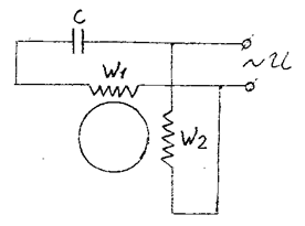 Двухфазні осинхронні електродвигуни завдяки легкості керування числа оборотів дістали велике поширення в автоматизації. У двухфазних осинхронних електродвигунів з нерегульованим числом оборотів дві обмотки живляться від загального джерела напруги , але для получення обертального магнітного поля в ланцюг одної з обмоток w1 статора включений конденсатор С.