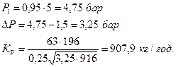 Р1 =0,95Р; Р1 - абсолютний тиск пари перед калорифером,бар, тобто на колекторі камери переважно задається, або береться за даними виробництва; Р2 - абсолютний тиск конденсату після конденсатовивідника, (тиск в конденсаційній магістралі 1,5 бар).